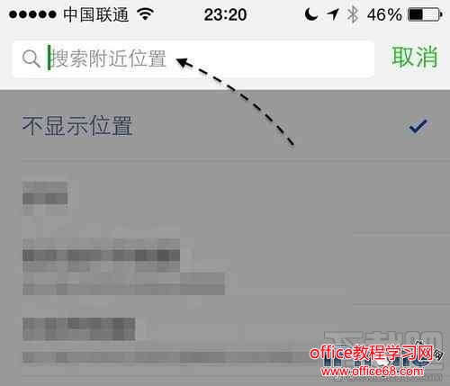 接下来请在位置界面中点击顶部的“搜索”框,如图所示