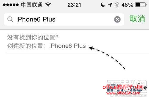 接着微信肯定是搜索不到 iPhone6 Plus 的位置信息了,接下可以让我们自己创建位置信息,点击我们输入的 iPhone6 Plus  一栏,如图所示