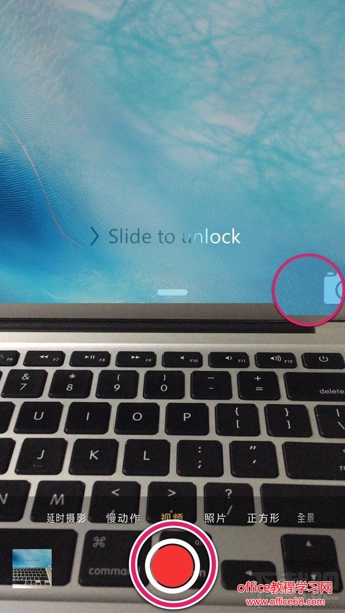 录制开始的时候,按一下home键,这个时候按住锁屏右下角相机小图标的手仍然不要松开,等待几秒钟,屏幕就自动关闭,就完成了熄屏下仍然可以正常拍摄的技巧!