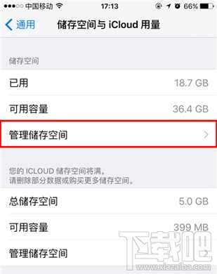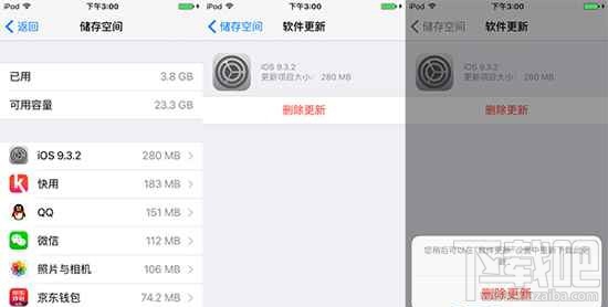 4.在出现的容量列表中,找到更新包,点击删除掉
