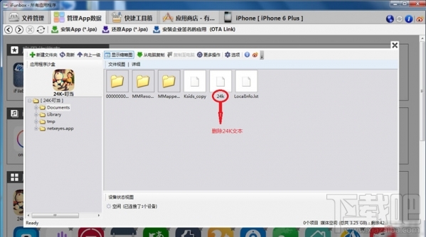安装方法需要注意一点,有的小伙伴说无效,其实是建立24k文件夹,字母是小写,大写无效。 点击下载一个叫ifunbox的软件。 运行一次app等出现授权码-退出app关闭后台-打开ifunbox-管理app-左键点击app-打开沙盒- 打开document文件夹-删掉24k-新建文件夹重名为2kK-授权完成。