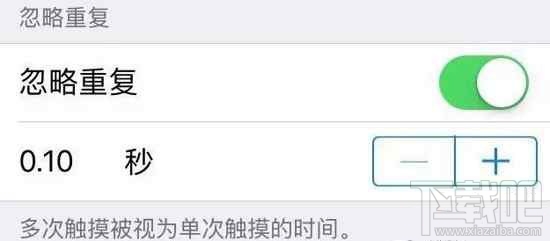 3.第二项功能是忽略重复,选项时间越长,就会把多次点击屏幕当成一次!也可以用于防止错误碰到屏幕!