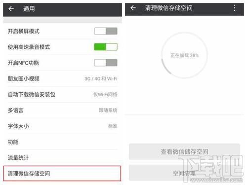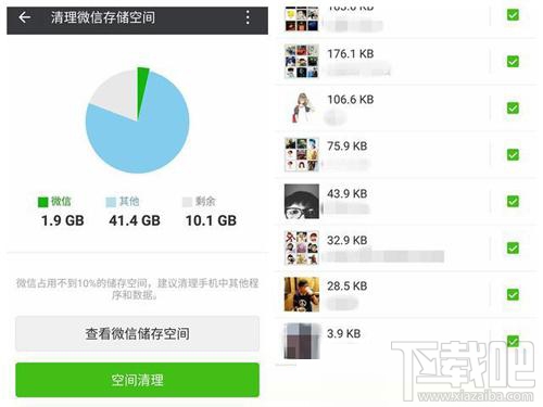 3.加载完毕微信会统计出软件所占据的空间,小编手机的微信用了近2G,点击查看微信存储空间,可自行清理垃圾。