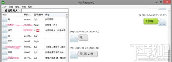 该方法非常简单对于一般的手机用户都可以独立操作,无需发送数据文件真正的有效保护用户的个人隐私。下面是使用工具MMRecovery实际恢复陌陌聊天记录的效果图: