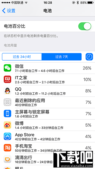 不少用户反映现在手机的用电量严重不足,一天要充好几次电,排除本身电池老化以外,你是否想过是你的应用太耗电了?怎么查找耗电的应用呢?下面小编带来iPhone如何查找最耗电的前台/后台应用教程。一起来看看吧! 在iOS9中,可以通过新增的电池设置项,查看具体应用在过去24小时、或过去7天的电池使用占比情况,点击旁边的时钟按钮,还可以显示具体的前后台工作时间,找到那些不合理的耗电应用,然后果断处理掉吧。