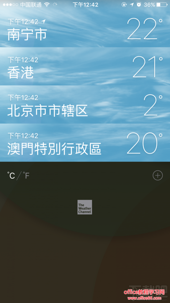 如果你经常使用原生的天气应用的话,接下来这个 3D Touch 的小 Tips 可能对你有不少的帮助。如果你是一个在外打工又或者是经常旅行的用户,你一定会同时关注几个城市的天气状况,我们除了可以在天气应用的主界面通过滑动来浏览几个城市的天气详情之外,其实还可以通过 3D Touch 来快速预览某个城市的天气详情。进入天气应用后,我们可以通过右下角的按钮进入城市添加界面,选择好添加的城市后,我们就可以对某个城市重力按压执行 3D Touch 操作,此时用户就可以对该城市的详细天气情况进行了解。