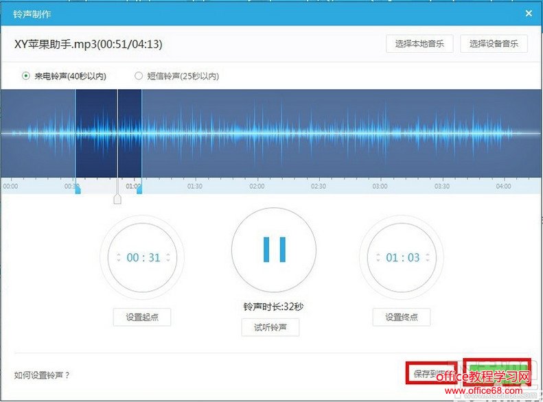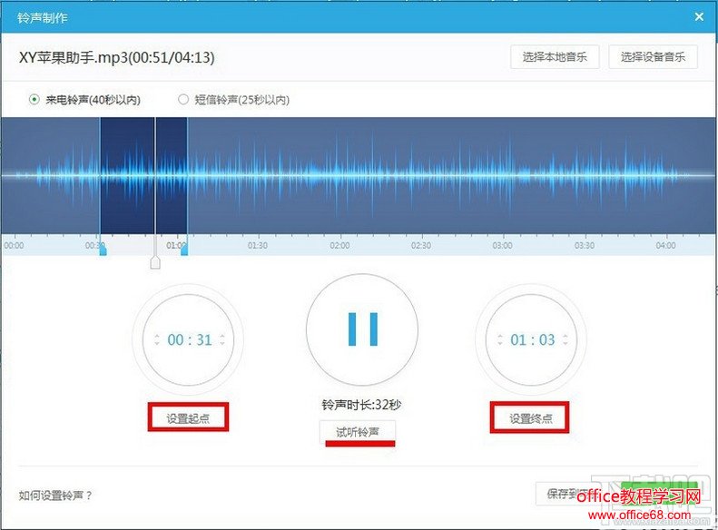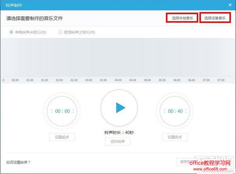 选择电脑本地或者你手机设备里的歌曲设置铃声