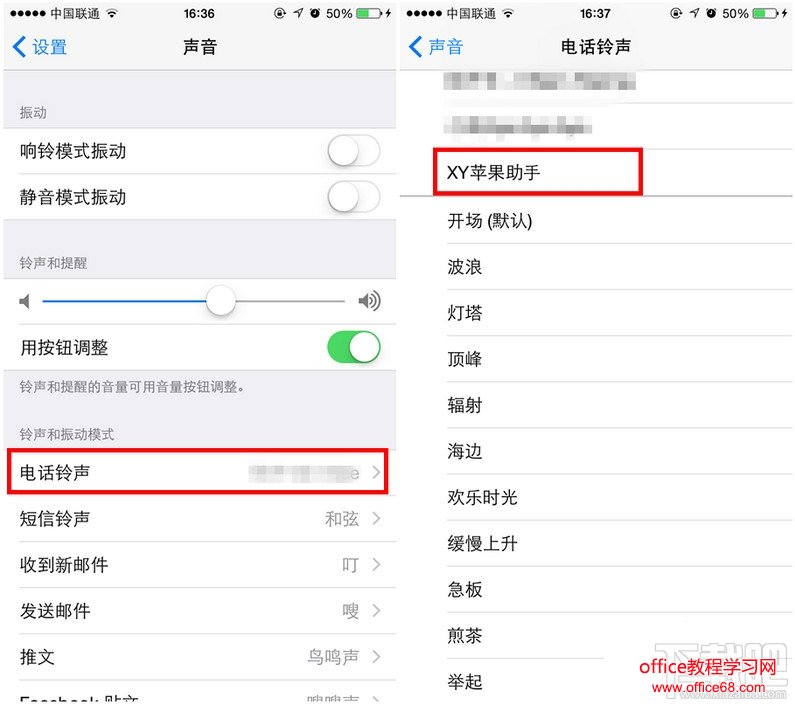 在电话铃声中直接设置你制作的或者下载的铃声为你手机的来电手机铃声