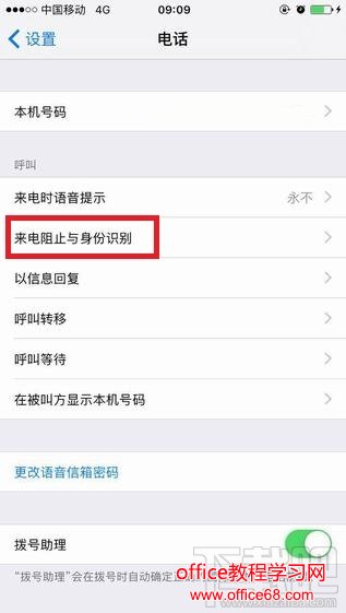3.你会看到一个“来电阻止与身份识别”,进去就可以设置啦。