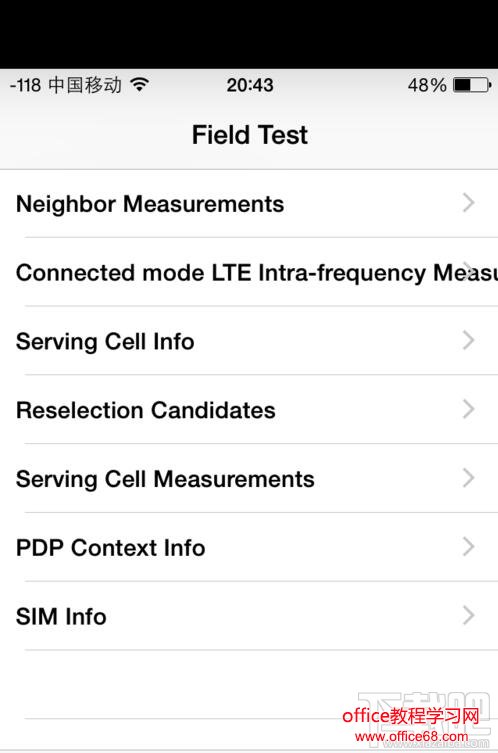 此时iPhone的调试界面,此时手机左上角将显示信号的具体强度;