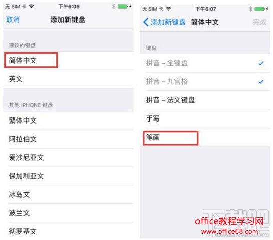 3)接着点击【简体中文】,随后选择【笔画】选项点击【完成】就可以了。