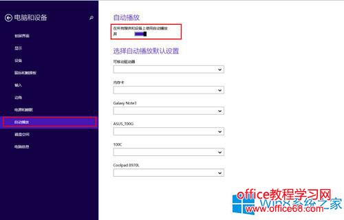 第二,进入设置面板之后选择“电脑和设备→自动播放”。