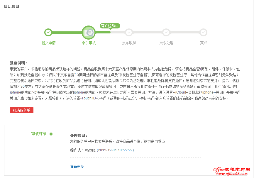 当日下午补:想了下要维修近一个月,先缓缓吧,过保还有4个月,维修的事还是等买了备用机再说吧。 听说有故障会给换新,不知道这好事能不能让我摊上,摊不上换机,给换块新电池也行,呵呵(-。-;),其实只要能解决经常关机的毛病就好。 |