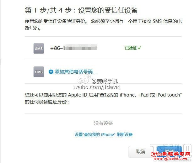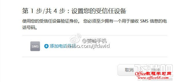 4、接着进入两步验证的设置阶段,点击“添加电话号码”选项,然后一直下一步,设置过程不再赘述,大家参考下图。