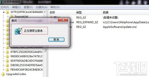 4. 再次使用组合键 Ctrl + F 调出搜索框,并输入 AppleSoftwareUpdate。需要注意的是,这里输入的搜索内容跟第二步不同的是,三个英文单词之间并不存在空格。 5. 点击查找下一个,然后删除注册表编辑器右边的框里的对应项,一直重复操作直到持续出现“正在搜索注册表”的提示对话框。这一步有点类似第三步。 6. 重启电脑。这时候,我们进入控制面板之后就会发现,原本一直无法卸载的 Apple Software Update 组件已经消失不见了。 7. 我们最后要做的就是打开浏览器,下载 iTunes 最新版本并完成安装即可。 |