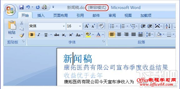 Word 在“兼容模式”下打开旧版本文档。通过文档顶部文件名旁出现的“(兼容模式)”可以确认这一点。