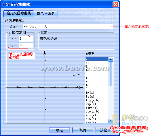 贴心提示:如果函数为您不太熟悉的函数时,建议您使用自定义函数图像。这样只要函数表达式输入正确就可以了!