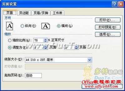 2.在“文件”菜单上,单击“页面设置”,再单击“页面”选项卡。