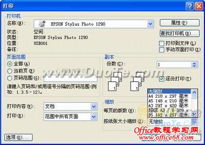 或许,你编辑表格所用的软件没有提供“缩放”打印的功能,比如有的财务软件生成的B4纸型的会计报表怎样打印到A4纸上呢?此时,我们可以直接求助所用的打印机,将打印机设置为缩小打印。现在,我们以EPSON Stylus Photo 1290打印机(操作系统为windows xp SP2)为例进行说明。
