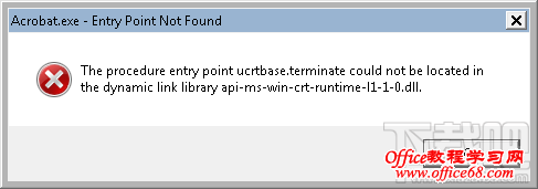 安装Office 2016启动Acrobat时出现“无法找到入口”错误怎么办 Acrobat启动错误“无法找到入口”解决方法 有用户反映在安装了 Office 2016 的 Windows 7 SP1 计算机上,当启动 Acrobat 时会出现以下错误消息:“无法定位程序输入点 ucrtbase.terminate 于动态链接库 api-ms-win-crt-runtime-l1-1-0.dll 上”。如下图的情况,下面一起跟下载吧小编看看怎么解决Acrobat启动错误。
