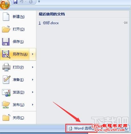 3、点击菜单中右下角的“word 选项(I)”这个按钮,然后进入下一个设置。