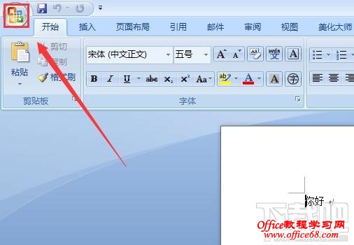 2、打开后,我们在Office 2007 word 文档的左上角,点击“office 按钮”那个按钮,点击后,弹出一个菜单!