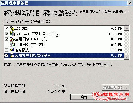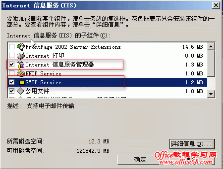 在上图中选中“Internet信息服务(IIS)”点击详细信息,选中下图中的红色框标识的选项