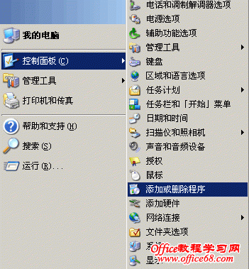 在弹出窗口左侧选择“添加/删除Windows组件”来启动组件向导