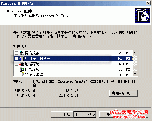 在“Windows组件向导”窗口中选中“应用程序服务器”