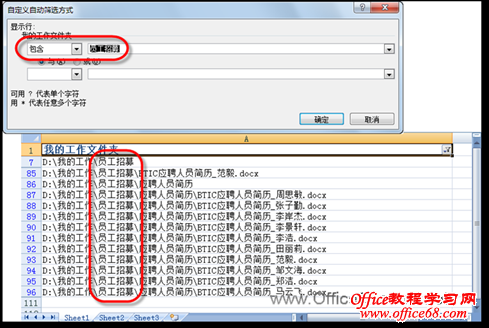 £¨6£©ÔÚ“×Ô¶¨Òå×Ô¶¯É¸Ñ¡·½Ê½”¶Ô»°¿òµÄ“ÌáʾÐÐ”ÇøÓòÖУ¬ÊäÈë“Ô±¹¤ÕÐÆ¸”£¬²¢µ¥»÷¡¾È·¶¨¡¿°´Å¥£¬´Ëʱ¹¤×÷±íÖÐÖ»ÏÔʾÎļþ¼Ð»òÎļþÃûÖаüº¬´Ë¹Ø¼ü×ÖµÄÌõÄ¿£¬Èçͼ6Ëùʾ¡£