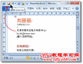 图5 转换 4. 接下来,小刘只需在文档的相应位置中输入自己的信息,最后单击快速访问工具栏中的【保存】按钮进行保存即可,如图6所示。