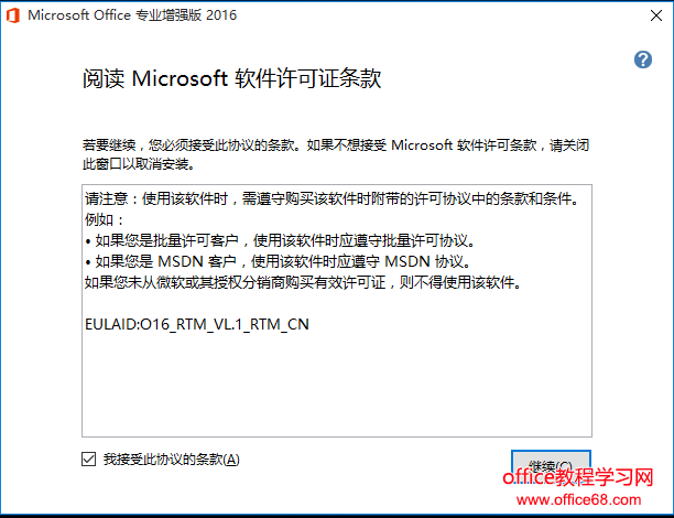 2. 勾选“我接受此协议的条款”,然后点“继续”: