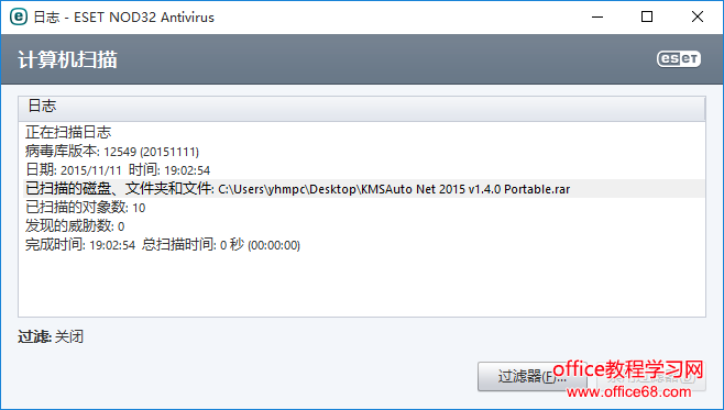 下图为小明的杀毒报告(NOD32),请放心使用: