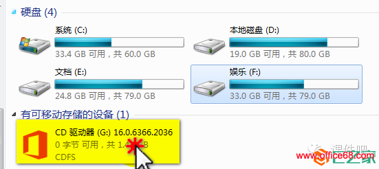 (2)打开“我的电脑”,这时会发现多了一个光驱,双击将其打开。如下图所示。