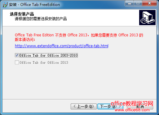 1. 安装时会有提醒:只支持Office2003-2010,不支持2013.