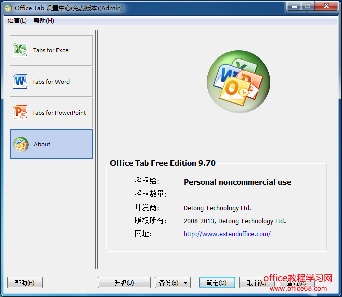 3. 安装完成后,可以在“关于”(About)界面看到免费授权,如下图: