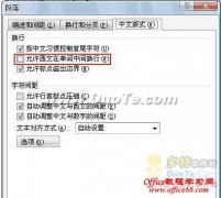 Word2007篇 1.改变单词换行设置 很多时候我们会遇到行尾的英文单词被Word2007自动拆分开的恼人情景吗?比如Automobile(汽车)被拆分成7Auto[自动)和Hobile(移动),造成阅读和理解上的困难。其实我们可以通过对单词换行设置的修改来解决这个问题: 依次点击段落右下角的小箭头,打开段落对话框中的中文版式选项卡,取消允许西...