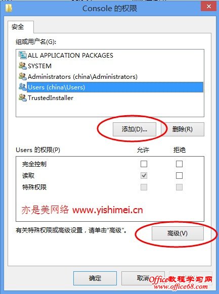 ps:还有一个小方法值得大家去尝试,那就是在打开步骤1后,直接找到“组或用户名”列表里的“Users”,然后给它设置“完全控制”的权限即可。