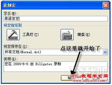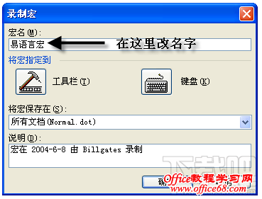 在“宏名”的编辑框中,我们可以改变我们将要创建的“宏”的名称,我们这里就把名字改为“易语言宏”