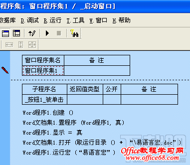 易语言如何使用office支持库中的宏呢,使用office中的宏,可以增强office与易语言之间的交互,为office办公软件的自动化提供方便,到底什么是宏呢? 我们把那些能自动执行某种操作的命令统称为“宏”。宏也是一种操作命令,它和菜单操作命令都是一样的,只是它们对数据库施加作用的时间有所不同,作用时的条件也有所不同。菜单命令一般用在数据库的设计过程中,而宏命令则用在数据库的执行过程中。菜单命令必须由使用者来施加这个操作,而宏命令则可以在数据库中自动执行。