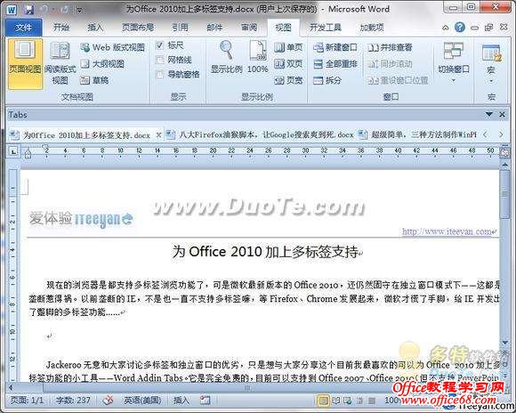 如何为Office 2010添加多标签支持
