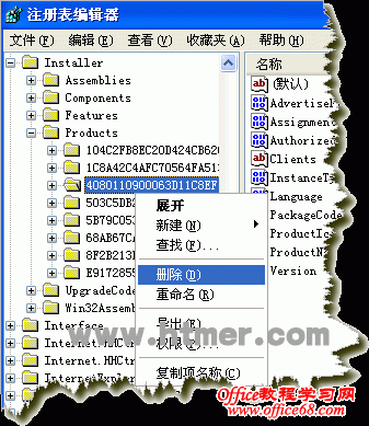 开始→运行→输入regedit,打开注册表编辑器,找到HKEY_CLASSES_ROOT\Installer\Products\4080110900063D11C8EF10054038389C项,将其整个删除即可,相关截图如下所示:
