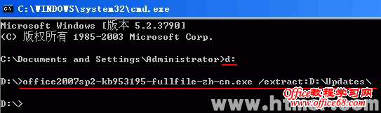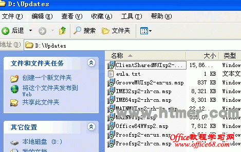 5、此时程序会自动将Microsoft Office 2007 SP2补丁文件释放到D:\Updates文件夹中,总共十个文件,相关截图如下所示: