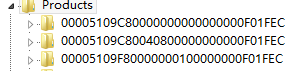 解决方案:按下win+R键,打开运行,输入regedit,打开注册表,依次定位到 HKEY_CLASSES_ROOT\Installer\Products,展开Products后,会出现若干以“00005”开头注册表键值,如下图所示: