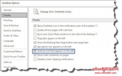 OneNote 选项 - 在左侧显示垂直滚动条 OneNote 提供有移动页面垂直滚动条到页面左侧的选项。 点击文件选项卡 - 选项项 - 打开OneNote 选项窗口 - 显示选项卡 - 显示组 - 打勾 在左侧显示垂直滚动条 。 左侧页面垂直滚动条 点击OneNote 选项窗口里的确定按钮后,回到 OneNote 主界面。 这时,会看到垂直滚动条已经移动到页...