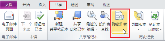 要隐藏显示每次编辑的作者姓名。 导航到共享选项卡,然后单击隐藏作者。 它将会阻止作者姓名显示出来。