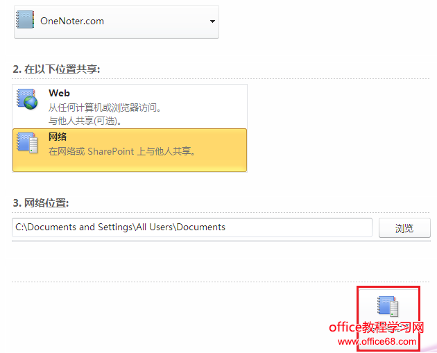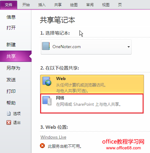 它将带您到 OneNote 后台的共享的部分,选择网络。