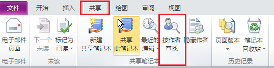 要找出特定作者编辑的内容,单击共享选项卡上的按作者查找。