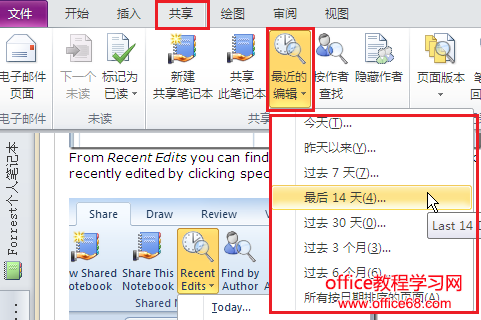 在“最近的编辑”里通过单击特定日期范围你可以找出笔记本最近编辑的所有版本。