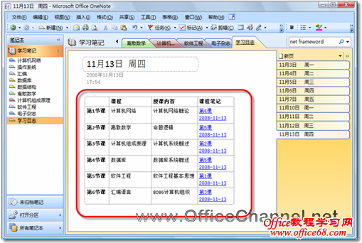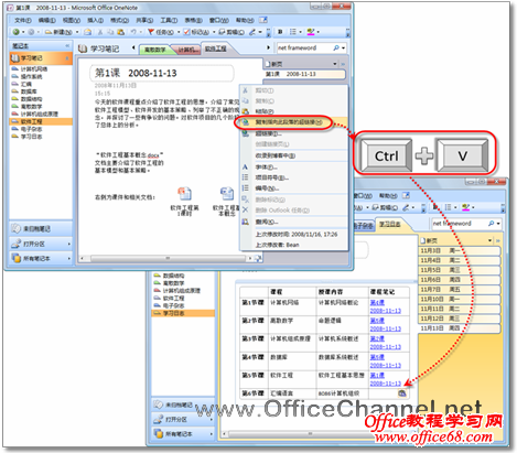 图2 将指向某个笔记的链接粘贴到目录页中 通过在笔记本中创建指向其他页面的超链接,可以为任何笔记本分区创建目录页,可以方便地跨越多个分区甚至多个笔记本交叉引用信息。 |